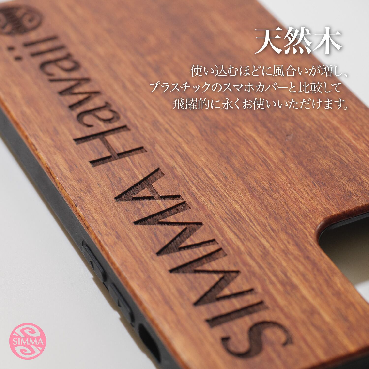 【製品仕様】・主素材:天然木(背面)、TPU樹脂(側面)